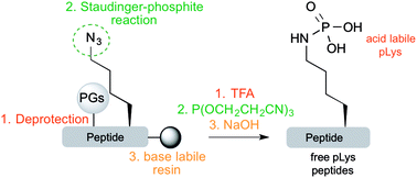 Direct access of site-specifically phosphorylated-lysine peptides from solid-support